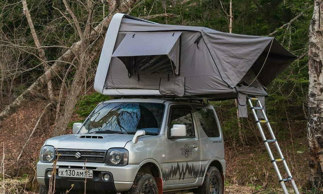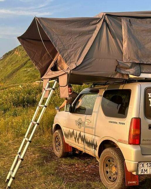Палатка kampina на крыше — это сочетание комфорта и отдыха на природе. Днём смотрите интересные места, ночью — спите в уютной автопалатке.